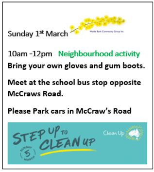 Please save the date and join your neighbours to discuss future directions for the growing needs of the Wattle Bank Community.